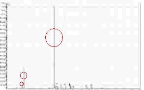 これは実際に私がオオスズメバチの毒液中の揮発性物質を分析した結果です。ちょっとわかりずらいかもしれませんが、3本の縦の線(ピーク)が見えると思います。