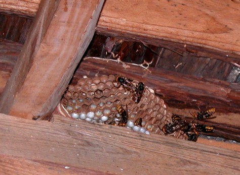 モンスズメバチの巣の特徴は、閉鎖空間に比較的大きな巣を作ることで、木の中の空洞、屋根裏、壁の隙間など隠れたところが好みのようです。